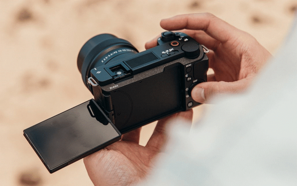 Màn hình lật xoay ra trước, mic tích hợp được tối ưu thu giọng nói, các chế độ như “Product Showcase” giúp focus nhanh vào sản phẩm khi đưa lên trước mặt – tất cả đều cho thấy Sony thiết kế ZV-E10 với mục tiêu chính là quay video, đặc biệt là vlog.